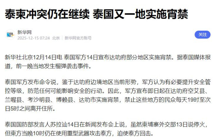 随着双方的行动越来越激烈,泰国有七个边境省份已被冲突波及,两个府实施了宵禁,还特意强化了夜间安全管控,没想到对他们而言,“活着”竟然成为了一种奢望。
