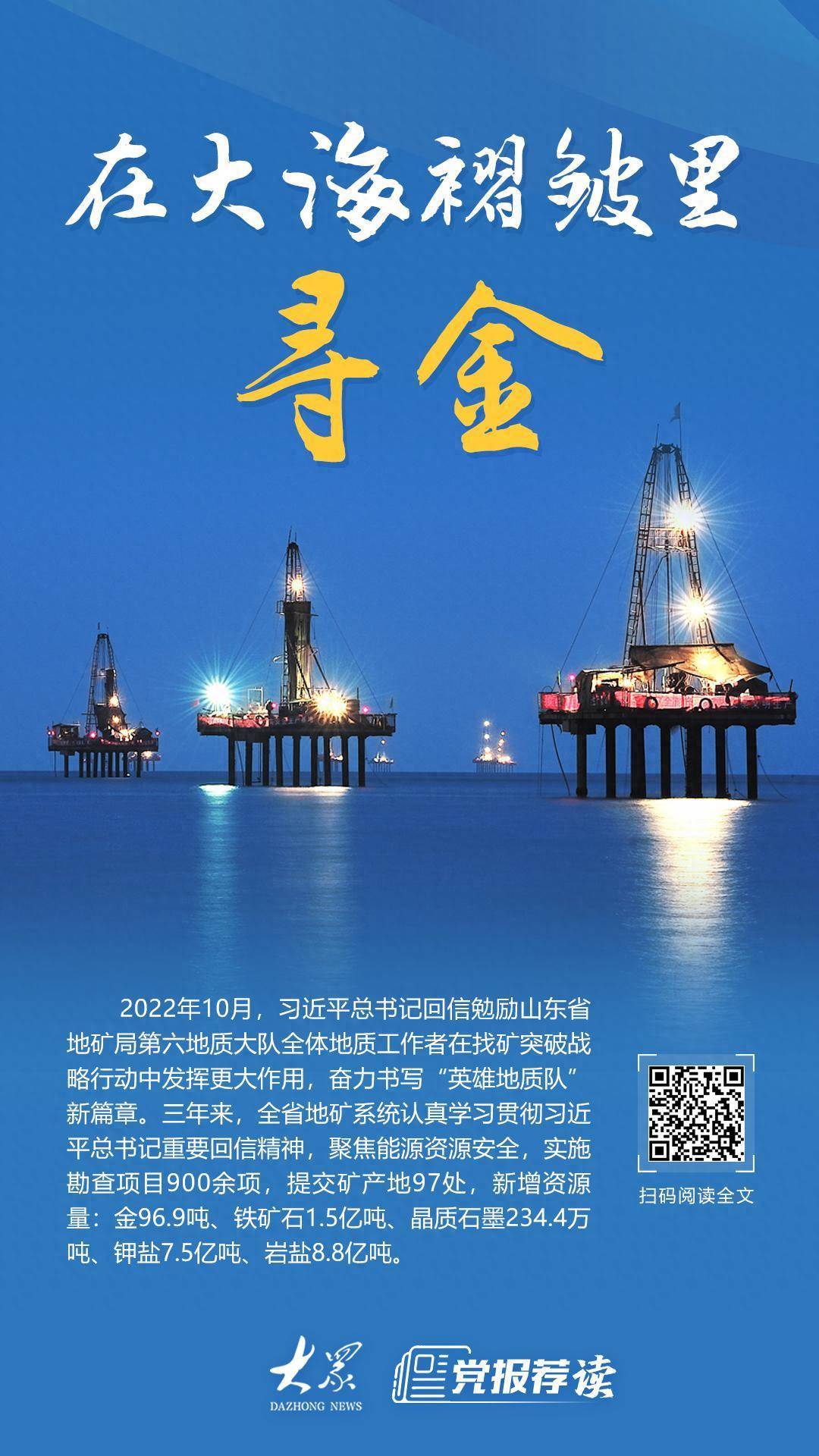2022年10月,习近平总书记回信勉励山东省地矿局第六地质大队全体地质工作者在找矿突破战略行动中发挥更大作用,奋力书写“英雄地质队”新篇章。